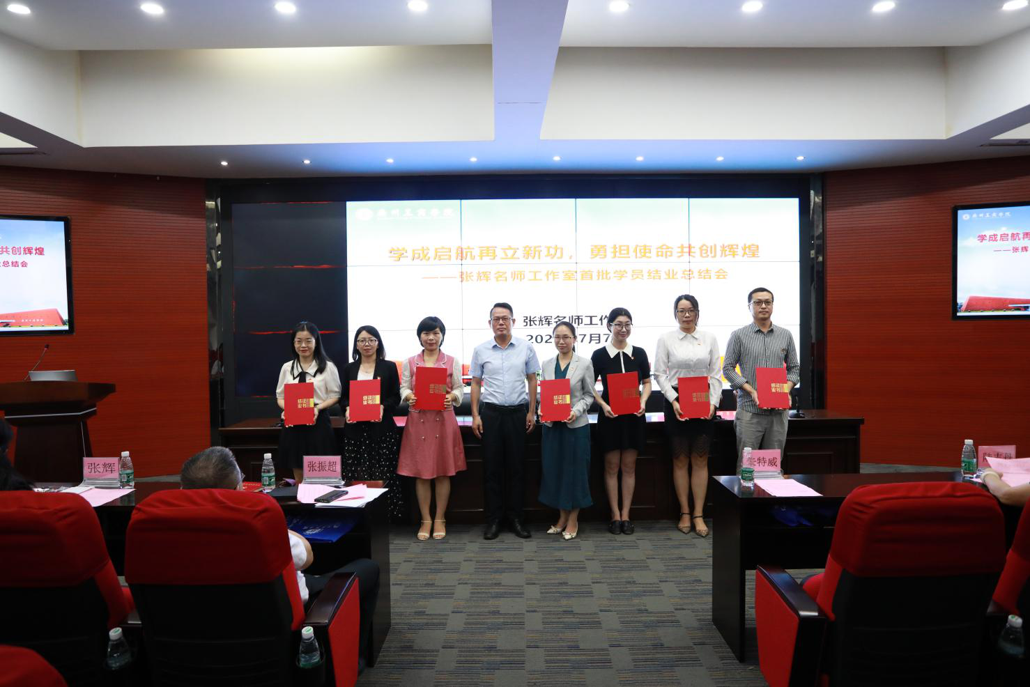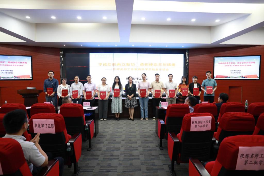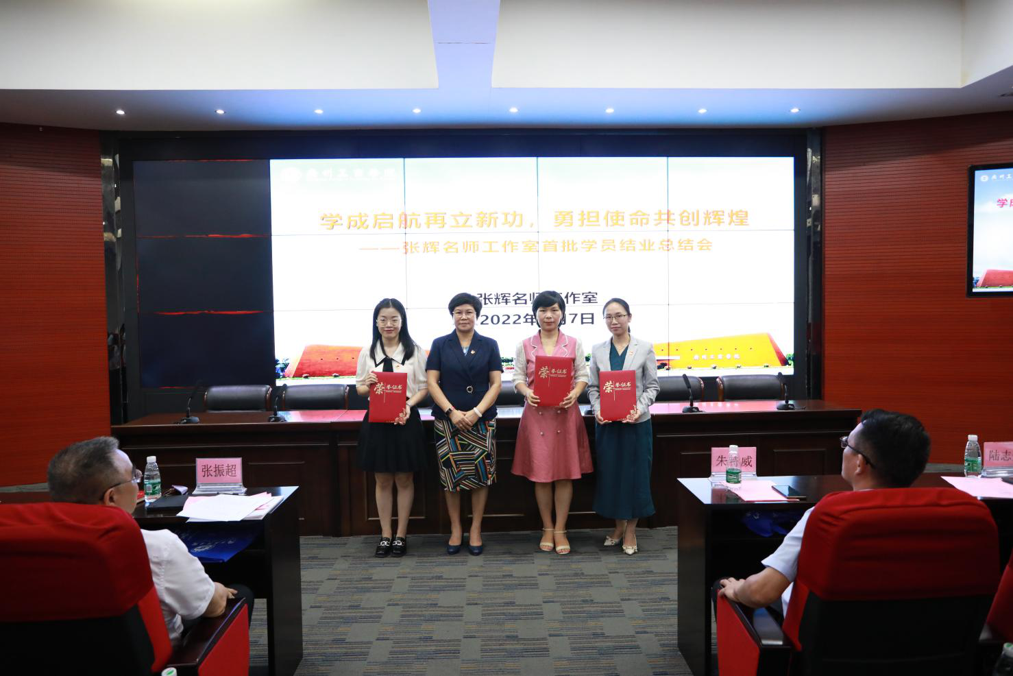 接着,朱特威副校长宣布首批学员结业名单并颁发结业证书。陆志丹主任宣读首批优秀学员名单并颁发证书。张辉副校长宣读《关于公布学校“张辉名师工作室”第二批学员名单的通知》并颁布学员证书。校党委张振超书记宣读《关于聘毛拓艺等10名同志为“张辉名师工作室”导师的通知》并给导师们颁发了聘书。