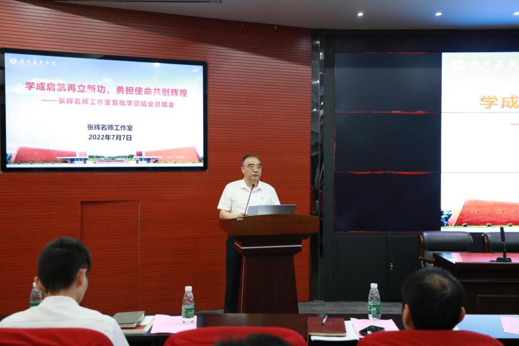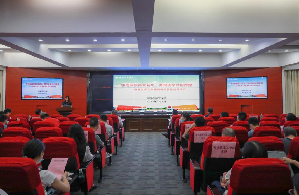 【本网讯】时光荏苒,韶华不负。为深入学习习近平新时代中国特色社会主义思想,落实立德树人根本任务,总结经验,表彰先进,展望未来,进一步推动张辉名师工作室的建设,提升为学校高质量发展服务的质量与水平,7月7日上午,ky开元集团官网张辉名师工作室在三水校区办公楼322会议室召开了以“学成启航再立新功 勇担使命共创辉煌”为主题的首批学员结业总结会。ky开元党委书记兼督导专员、副校长张振超同志,党委副书记兼纪委书记、副校长朱特威同志,党委副书记、副校长兼马克思主义学院院长张辉教授,党委委员、董事办主任陆志丹同志等校领导出席了总结会。学校党办、组织部、人事处、教务处、学生处、团委等相关职能部门领导、各二级学院主管学生工作的副院长和学工办主任及辅导员代表、学校各工作室主持人及代表、张辉名师工作室全体导师及学员、马克思主义全体教师参会。会议由马克思主义学院党总支书记、常务副院长周静副教授主持。