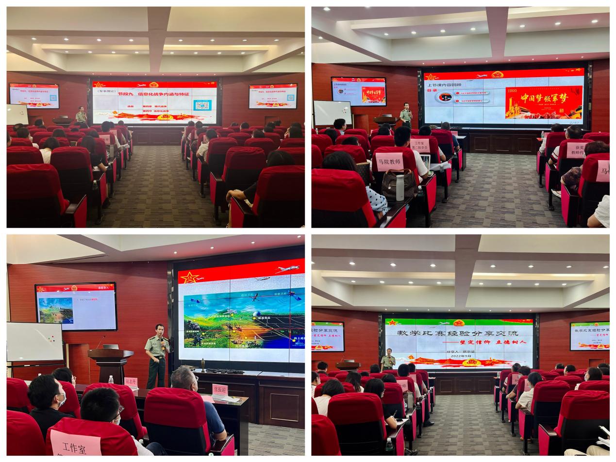广东省第六届高校(本科)青年教师教学大赛二等奖、第二届全国高校教师教学创新大赛广东分赛暨广东省高校教师教学创新大赛三等奖、2021年广东高校大学生心理健康教育课教学基本功比赛二等奖获得者骆思贤老师进行《培养正确的恋爱观》示范课展示以及《捧着一颗心 上好一门课》教学竞赛经验分享。广东省第六届高校(本科)青年教师教学大赛二等奖、广东省普通高校军事理论课教学比赛一等奖获得者蔡宗坚老师进行《信息化战争内涵与特征》示范课展示以及《坚定信仰,立德树人》教学竞赛经验分享。两位老师潜心打磨教学技艺,严以律己,精益求精,在“两性一度”金课标准上下功夫,勇夺竞赛佳绩,现场教学展示精彩纷呈,经验分享毫无保留,给听众很大的启发。