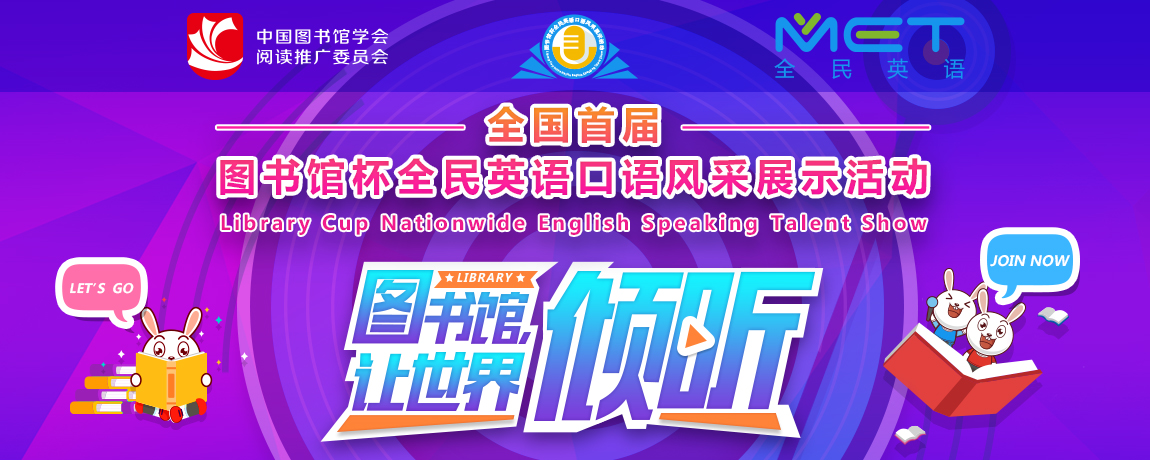 为庆祝中国图书馆学会成立40周年,迎接2019年“4.23世界读书日”,倡导全民阅读,不断创新阅读推广方式,向读者展现图书馆多元化、数字化等新型服务手段,体现图书馆学习中心的服务特质;同时,增强图书馆工作人员专业英语沟通技能,提高图书馆涉外服务能力,中国图书馆学会阅读推广委员会将于2019年4月至7月联合全国各公共图书馆、各高校图书馆共同开展全国首届“”图书馆杯全民英语口语风采展示活动。