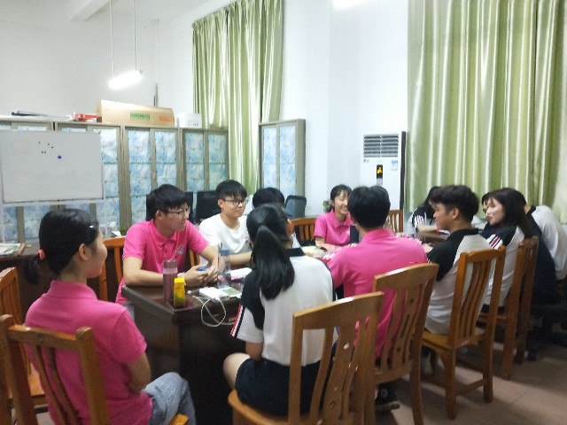 活动开始,两队成员分别以活泼轻松的方式进行了自我介绍。在主持人的引导下,我们开始了一系列讨论话题,话题分别围绕“巴黎圣母院被烧”、“哭诉维权&奔驰傲慢”、“‘996’工作制”、“电视剧《都挺好的》(原生家庭)”这四个话题进行热烈讨论。讨论过程中,同学们各抒己见,积极主动,有些同学的观点甚至剑走偏锋,引起大家阵阵欢笑。交流会的最后一个环节是一个打破常规的辩论赛,同学们随机分为正反两方,围绕着“是否应该把兴趣当职业”这一话题阐述自己的观点,正反两方据理力争,但丝毫不影响大家逐步建立的“革命”友谊。最后,本次读书交流会在同学们的合影留念中圆满结束,取得了预期的效果,并收获大家的一致好评。