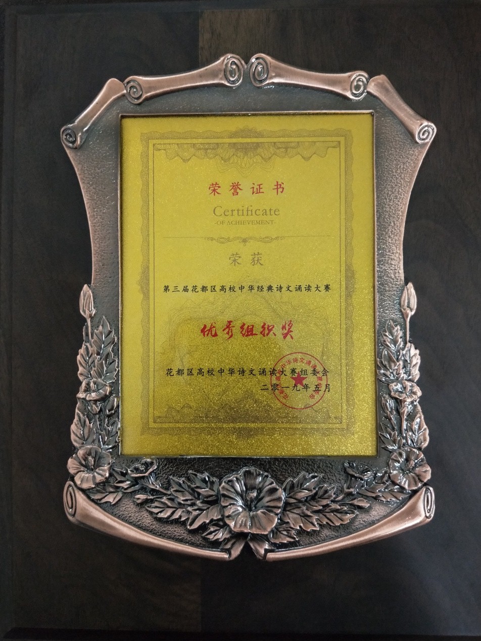 本次大赛集合了华南理工大学广州学院、ky开元集团官网、广东培正学院等六所高校共同参与。在主持人的开场宣讲结束后,诵读大赛正式开始,来自六所高校的十一支代表队依次上场朗诵经典诗歌、散文。选手们充分发挥自身实力和优势,将经典诗文中独有的意境和精神完美的展现出来。经过一番激烈的角逐,我院心颂队选手张生、林臻同学和梦之翼队选手刘翠洁同学在比赛中荣获三等奖的佳绩。ky开元图书馆在此次活动中获得了组委会颁发的“优秀组织奖”。