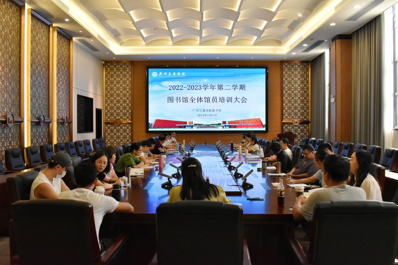 为提高馆员专业知识,强化馆员综合素质,全面提升图书馆的服务水平,进一步夯实图书馆内涵建设和高质量发展的基础。2023年7月5日,图书馆在花都校区412会议室举办了全体馆员培训会议,会议由图书馆馆长赵元章主持。