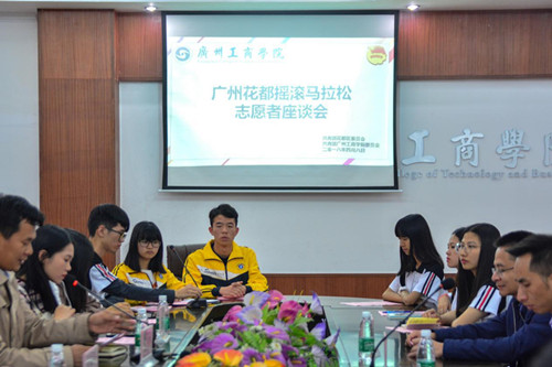 【本网讯】为了进一步弘扬志愿精神,更好地传递志愿服务力量,2018年4月8日下午,在我院花都校区办公楼101召开了广州花都摇滚马拉松志愿者座谈会。参与本次座谈会的有团花都区委雷达副书记、我院团委洪卫烈书记、团花都区委周运芽老师、团委严晓君老师、团委陈敏怡老师以及各位广州花都摇滚马拉松志愿者代表。本次座谈会由我院团委洪卫烈书记主持。