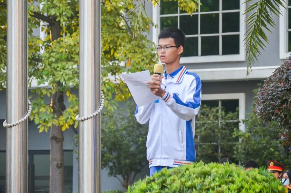 校团委国旗护卫队干事罗钏洲,在国旗下宣读了《国旗法》、《国歌法》。通过本次的宣读,加深了团学干部与干事们对国旗、国歌的认识,更好地维护国旗与国歌的尊严,增强国家观念,弘杨了爱国主义精神。