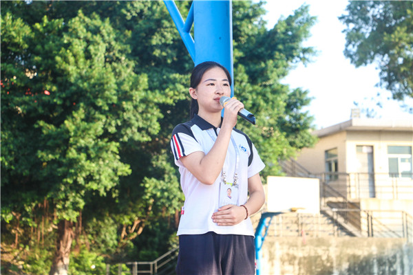 新生代表钟天烨同学和陈庆玲同学发表国旗下的演讲。钟同学在演讲中表示大学生应当以“德学”为帆,才能坚定信念和信心;以“五进”为浆,才能使梦想实现成为一种可能。感谢军训的磨练,让自己拥有强健的体魄和坚强的意志。陈同学呼吁新生们应该适应时代发展要求,高举爱国主义的旗帜,锐意进取、艰苦奋斗,真正把爱国之志变成报国之行。