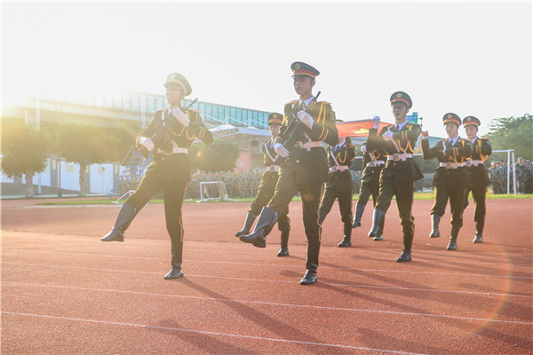 【本网讯】9月10日上午七点,ky开元集团官网2018级新生升旗仪式在三水校区厚德广场和花都校区田径场举行,2018级学生军训团叶团长、赖团长和全体教官、学生处工作人员以及参训新生参加了本次升旗仪式。
