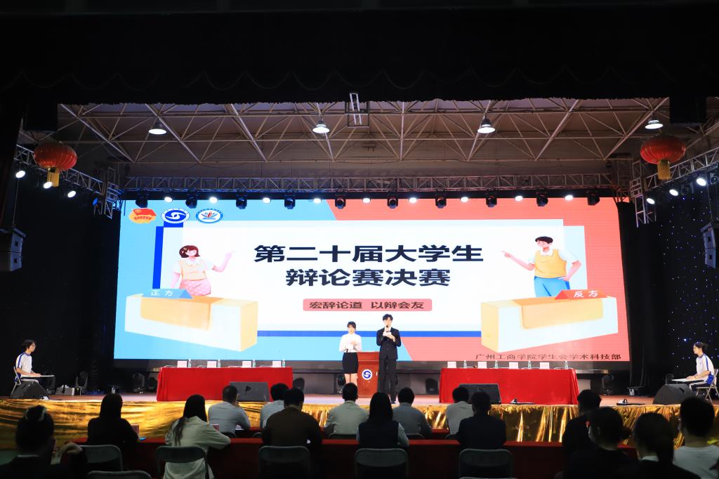 【本网讯】为丰富大学生校园文化生活,锻炼大学生的思辨能力,展现广工商学子青春风采,3月23日晚,学校第二十届大学生辩论赛决赛在花都校区体育馆举行。评委由校团委、马克思主义学院、通识教育学院教师代表担任。校团委全体老师、花都校区各二级学院团委书记以及学生代表观看比赛。