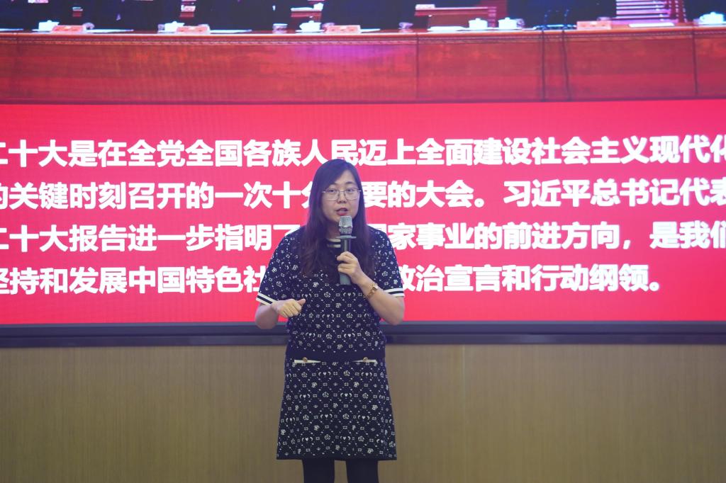 大会特邀广东省团校团干部培训部青年教师、广东省五四宣讲团成员,广东省青年讲师团成员王乌兰副教授为同学们授课。王教授从学习领会党的二十大精神、深刻认识党的青年工作的重大意义和统筹做好新时代党的青年工作三个方面带领师生解读党的二十大精神;她以各个历史时期青年人敢于担当历史使命的实例,为新时代的青年学子指明未来行动方向和目标,她强调如今正逢祖国发展的关键时刻,在向第二个百年奋斗目标进军新征程上,青年作为实现中华民族伟大复兴的主力军,要听党话、跟党走,提升自身综合素质和道德修养,有一份热、发一份光,争做有理想、能吃苦、敢担当、肯奋斗的新时代好青年。