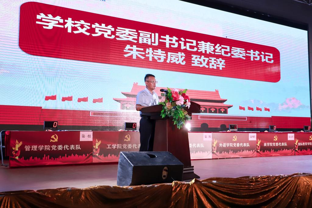 【本网讯】为深入学习宣传贯彻党的二十大精神,扎实推进学校主题教育各项工作,增强基层党组织的组织力、凝聚力、战斗力。6月13日,学校第六届党的基础知识竞赛决赛于在花都校区体育馆顺利举行。学校党委副书记兼纪委书记、副校长朱特威同志出席致辞,党务部门负责人、各二级党组织师生代表以及参赛选手近500人参加。