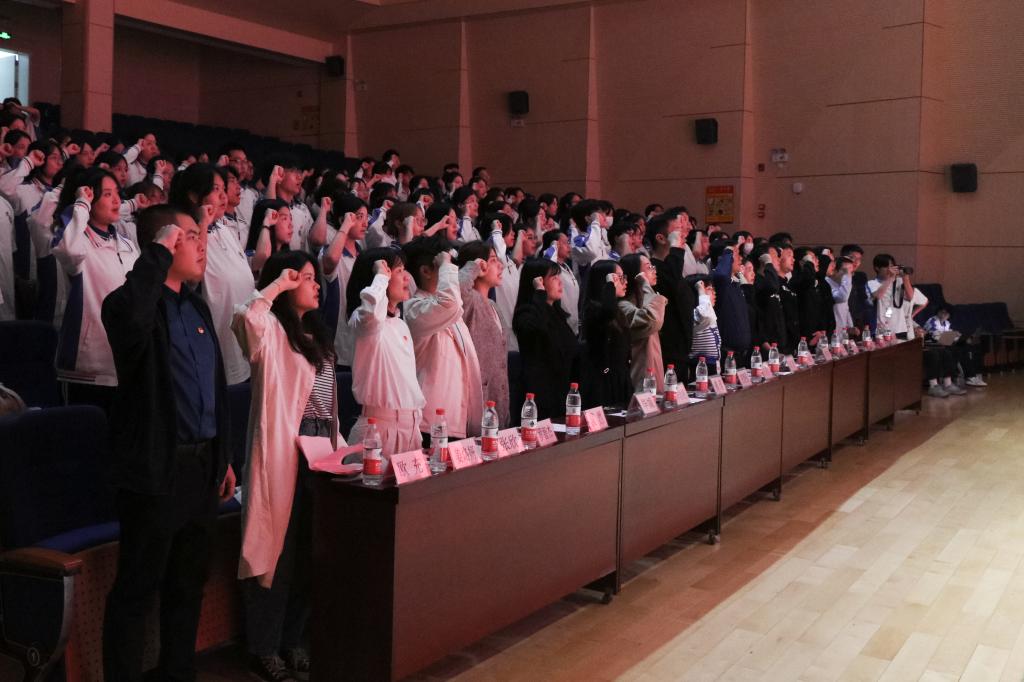 最后,校团委书记洪卫烈同志对新入团的同学表示祝贺,也对新团员提出了几点希望:一是要在政治上树立标杆,筑牢信念根基。理论修养是青年马克思主义者的核心,理论上的成熟是政治上成熟的基础,政治上的坚定源于理论上的清醒;二是要树立远大理想,做有志青年。以理想照亮航程,做“眼中有光”的时代青年,希望同学们用理想的灯照亮前行的路,勇做走在时代前列的奋进者和开拓者;三是要服务社会,做有为青年。希望同学们积极参与社会实践,提高自己的实践能力和创新能力,在奋斗中实现个人价值,使个人成长与国家发展同向而行。