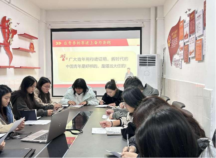 10月27日。校学生会主席团成员陈梓晖紧扣主题教育主线,以功能型团支部建设为抓手。围绕“坚强核心”的专题,开展集体研学会。会上,陈梓晖作了《深刻领悟“两个确立”的决定性意义》的导学报告,他强调各支部成员要牢记党旗所指就是团旗所向,始终牢记“全心全意为同学服务”的宗旨,聚焦主责主业,构建服务闭环,努力成为学生“找得到 靠得住”的家。各职能部门负责人分享学习心得、查摆工作不足、制定下一阶段任务。
