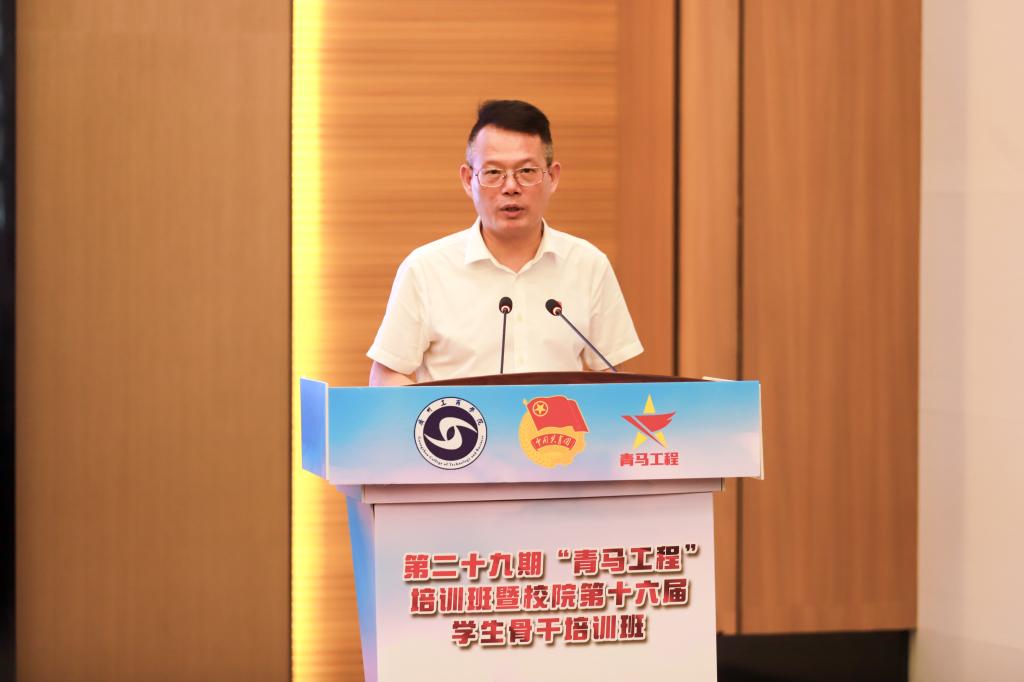 学校党委副书记、纪委书记、副校长朱特威为本期青马班致辞。他强调,学校实施“青马工程”是党交付给共青团的一项重要政治任务,是确保党的事业兴旺发达、后继有人的一项政治工程。经过28期的发展形成了“3+3+6”的思政育人模式,培养学员将近5000名,引领了一批又一批的青马学员强国建设的火热实践中。他向本期青马班学员提出了三点希望:一是深学细悟,学好理论学习的“必修课”。把深入学习贯彻习近平新时代中国特色社会主义思想作为首要任务和中心内容。二是强筋健骨,上好能力淬炼的“实践课”。自觉把“苦读”“善学”“勤思”作为一种生活习惯、精神追求、政治责任,力求学以养德、学以增智、学以致用。三是挺膺担当,锻好融入大局的“示范课”。积极投身经济发展和社会服务中来,在全面推进中国式现代化建设中挺膺担当。