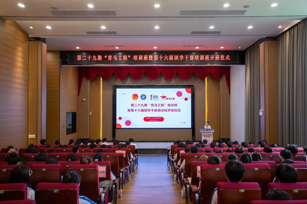 在开班仪式上,进行了授旗仪式、宣读纪律、宣誓仪式等环节,以及共同观看了往届“青马班”视频。