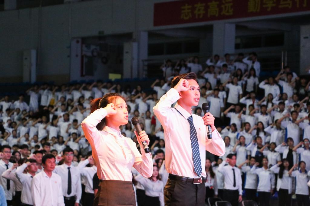 大会在庄严的国歌声中拉开序幕。全体人员观看团学祝福视频,动人话语鼓舞着团学新老干部勿忘初心、坚定不移地继续前行。紧接着,由团委洪卫烈书记为学院团委、学生会2017级部长、会长颁发聘书并介绍2018级学院部长、会长。团学干部行宣誓礼,整齐划一的宣誓声展现了与会人员良好的精神状态。