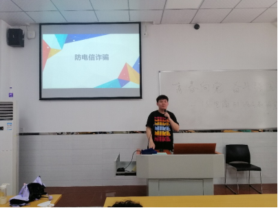 生活委员包振峯同学向我们介绍了常见的电信诈骗类型,分别是网贷诈骗、网络购物退款诈骗、熟人诈骗以及刷单诈骗。同时运用多个真实案例进行分析,让同学对诈骗有了一个更为深刻的认识。最后,他向我们提出面对诈骗的解决方案,一是不要有贪图小便宜的心理,二是如果遭遇疑似刷单诈骗应当立刻报警。