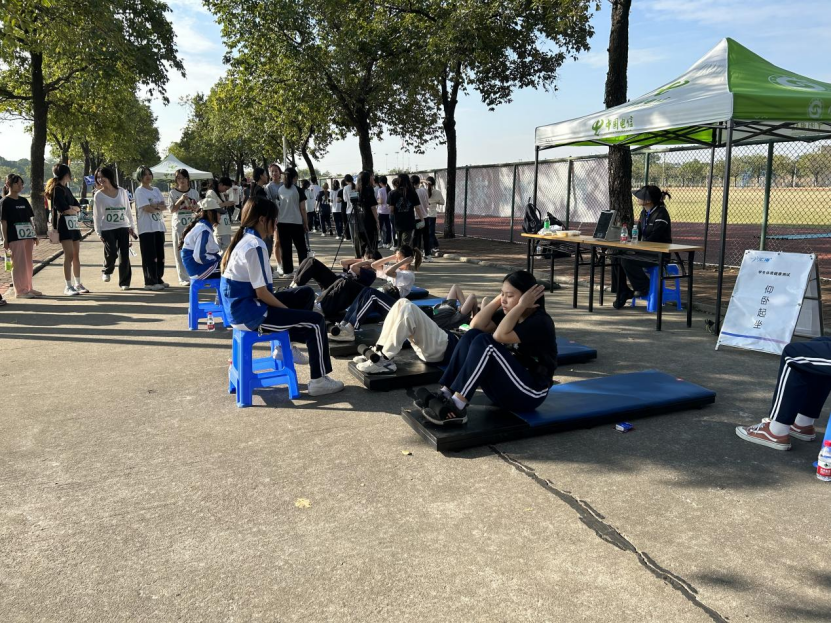 测试当天,易露霞副校长到现场检查并指导工作,体育部组织了15名体育教师、58名学生志愿者全程积极配合测试工作,学校配备医生、护士以及救护车做好测试现场的医疗保障,还有学校红十字会志愿者协助现场工作,他们认真负责,穿梭于医疗点和测试场,从同龄人的角度给与被抽测学生更多的关怀和照顾;学校结合各兄弟院校的好做法,在引体向上项目的单杠上为学生缠上防滑手胶;同时,抽测现场还设置了补给站,为测试学生提供姜热水、葡萄糖等能量补给;各被抽测学院的办公室主任、班级辅导员全程跟踪,为测试的学生加油打气。整个测试过程井然有序,保障到位,得到了抽测组的高度认可。