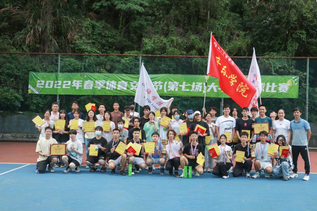 5月6日下午,历时19天152场紧张激烈比赛的花都校区网球比赛落下了帷幕。体育部主任刘嘉丽教授、体育部主任助理林伟光老师以及有关老师参加闭幕式并为获奖代表队和运动员颁奖。