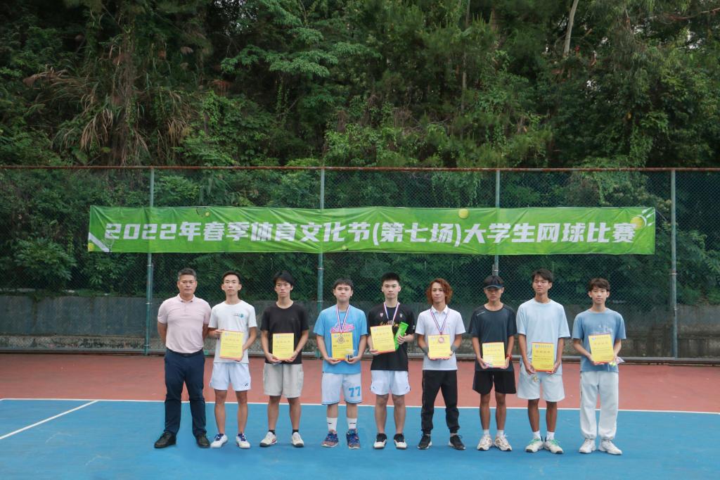 获得男子单打前八名的为商学院彭飞、商学院曾德韬、商学院林澈、商学院梁翱、继续教育学院一部王俊杰、继续教育学院一部岑永鑫、外语学院莫锦迟、音乐学院王若宇。