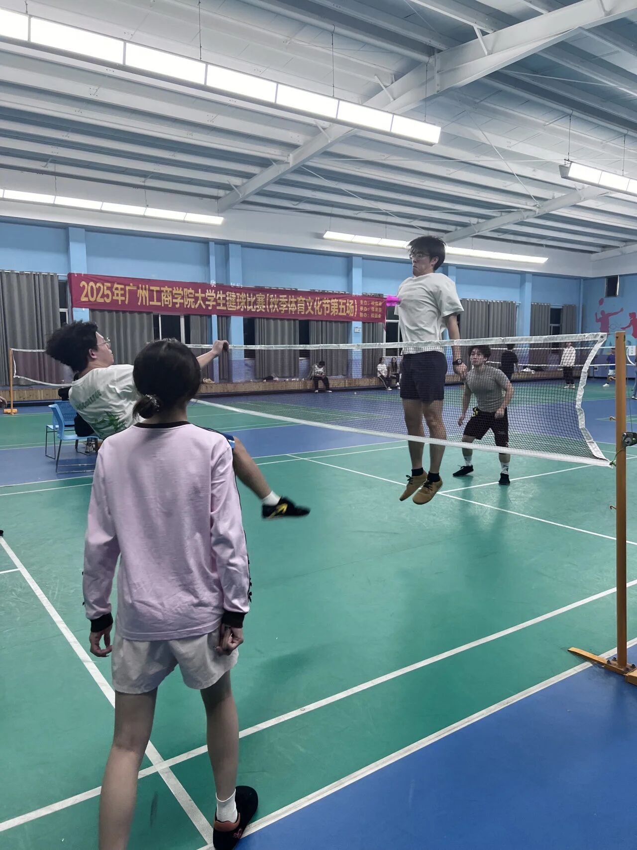 本次学生毽球比赛在三水校区举行。三水校区共有19支队伍报名参加了比赛,参赛运动员达到了近百人,参与比赛工作的学生裁判员和学生工作人员20余人,比赛现场观众踊跃、热情高涨。