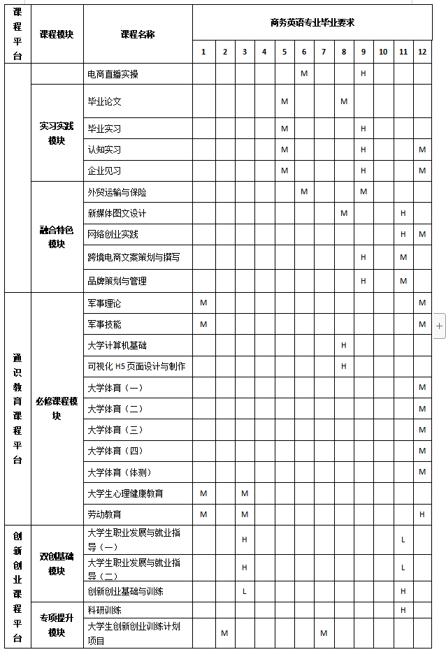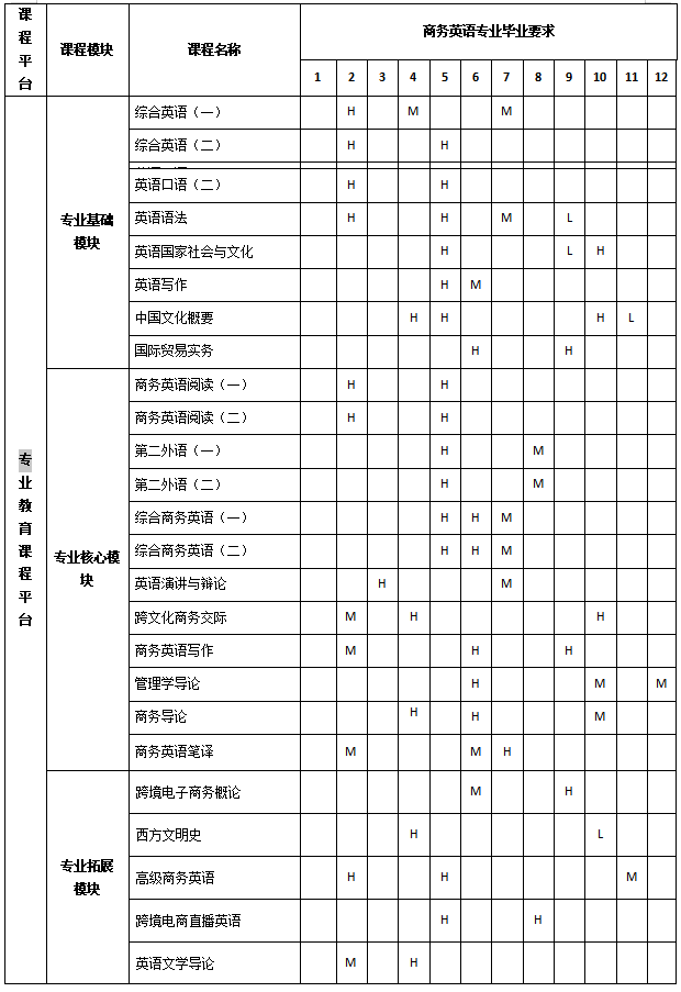 目标4:具有健康的身心、良好的人文素养、团队合作、沟通表达、项目管理能力;具有敏锐的市场洞悉能力和商务分析、决策和实践能力;熟悉互联网、展会及移动新媒体营销,善于整合、利用各种资源进行市场开发,能够成为国际贸易和跨境电商等进出口企业的业务骨干。