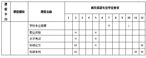 商务英语专业形成“四平台多模块”的课程结构体系,课程设置具有三大特色:注重语言基础能力的培养;商务英语核心课程有效交叉融合;依据学校办学优势、区域经济需求和岗位需求开设课程。