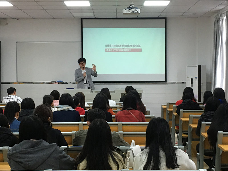 跨境电子商务是基于网络发展起来的,在国家政策支持下,跨境电商给予年轻人机会同时也给予了更多的挑战和创新。11月21日下午16:10分,外语系邀请深圳市中澳通网络信息有限公司跨境电商Amazon的廖经理为15级同学们做了宣讲会。廖经理从亚马逊的经营模式,以及近几年在国内的发展规模和企业规划做了详细的宣讲。也就企业对毕业生的要求和人才需求做了进一步的说明和引导。从实际网络页面的讲解也道出了企业对专业技术人才的需求。同学们在轻松的宣讲范围下既学习到了跨境电商知识,也对中澳通网络信息有限公司跨境电商Amazon有了更进一步的了解。宣讲会结束后,同学们也踊跃向企业报名参加实习。