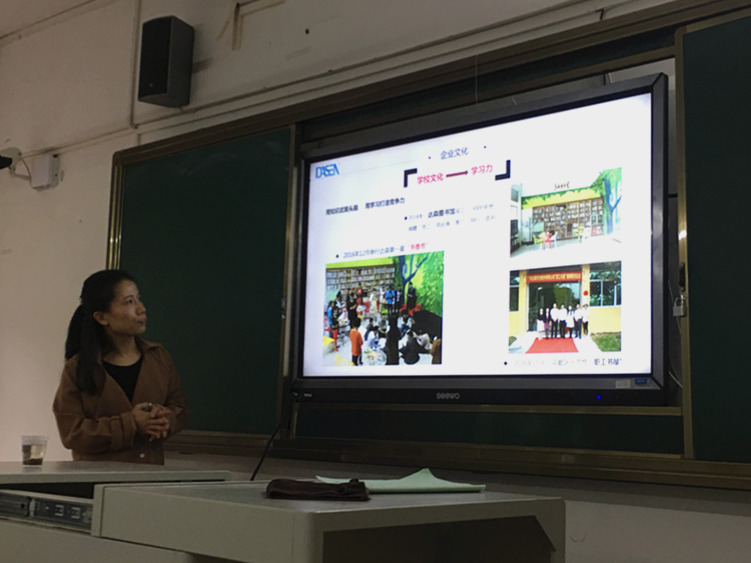 陈小姐为同学们介绍达森公司的发展及招收情况