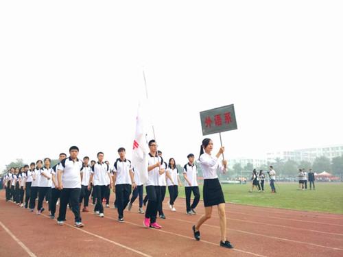 本届校运会竞赛日程分为11月18日和11月9日两日,田赛、集体项目共有十六场,径赛共有二十二场。校运会首日由开幕式和赛程两大部分组成,在赛事正式开始前首先举行开幕式。随后,由各院系运动员组成的十五个方阵整齐有序、斗志昂扬地入场,而精神抖擞的外语系精英代表团按照入场序列号排在第十三位入场。