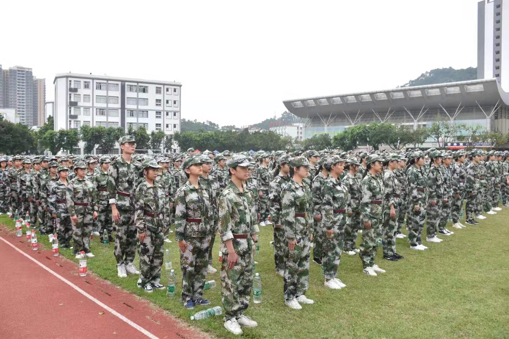 在新生们集体宣誓和奏唱解放军进行曲下,军训动员大会到此结束,外语系新生积极对待此次军训,展现了外语系新生良好的精神风貌。