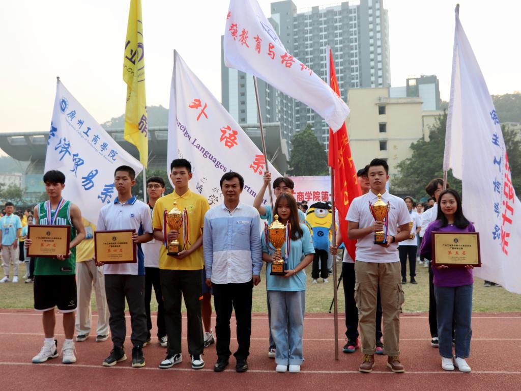 学院副院长朱特威、院长助理兼实验实训中心主任林强老师、外语系高凤江主任以及各系领导莅临本次闭幕式,体育部主任刘嘉丽教授担任此次大会的主持人。本次闭幕式共有七项议程。各参赛单位按要求列队,闭幕式正式进入了第一项议程,副总裁判长林伟光依次宣布团体总分和体育道德风尚奖获奖单位,其中外语系荣获第十九届校运会团体总分第四名,广播体操第二名的优异成绩,接下来,副院长朱特威老师和学生处副处长谭全为老师分别为团体获奖单位颁奖,院团委书记洪卫烈为广播体操比赛前六名获奖单位颁奖,感谢外语学子的共同拼搏和努力。大会最后一项,学院副院长朱特威老师为校运会致闭幕词,对取得优异成绩的广大运动员表示热烈的祝贺,对奋力奋勇的运动员及恪尽职守的工作人员们表示感谢,望同学们积极践行“五进”,争取更多丰硕的成功,最后,宣布此次校运会圆满结束。