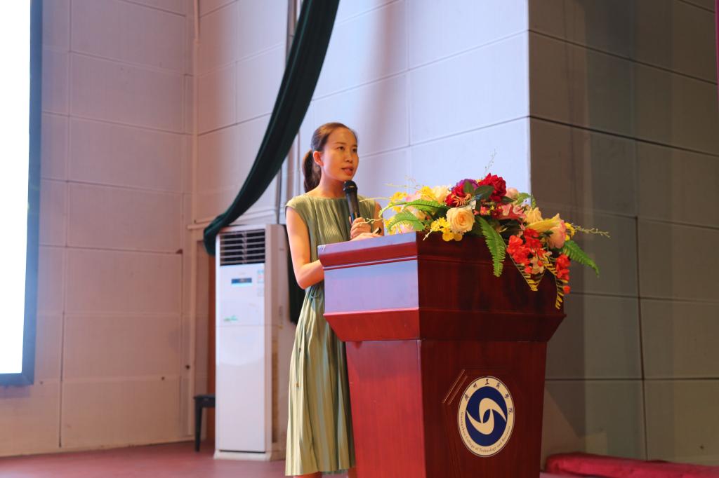 紧接着由外语系优秀教师代表石晓彤老师发言。石老师欢迎同学们加入ky开元集团官网外语系这个大家庭,希望同学们牢记,正德厚生,励志修能的校训。在大学生活中能做到以下几点:勇于担当,勇于挑战,追逐青春梦想,展现青年担当;敢于选择,把握机会,机会总是掌握在有准备的人手中;珍惜时间,以梦为马,不负韶华。最后石老师衷心祝愿同学们学业进步。
