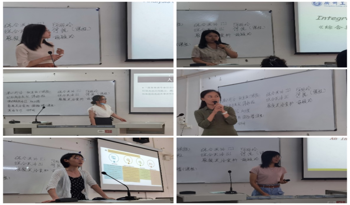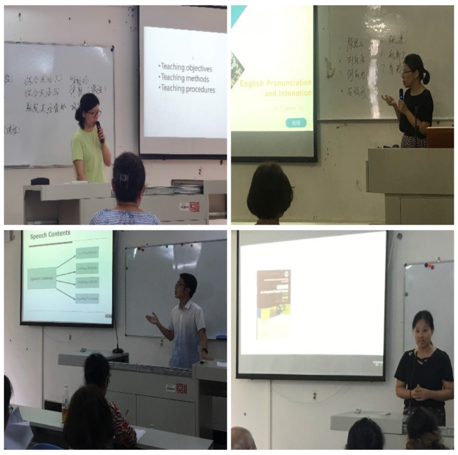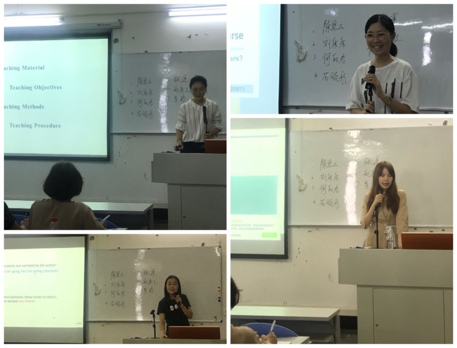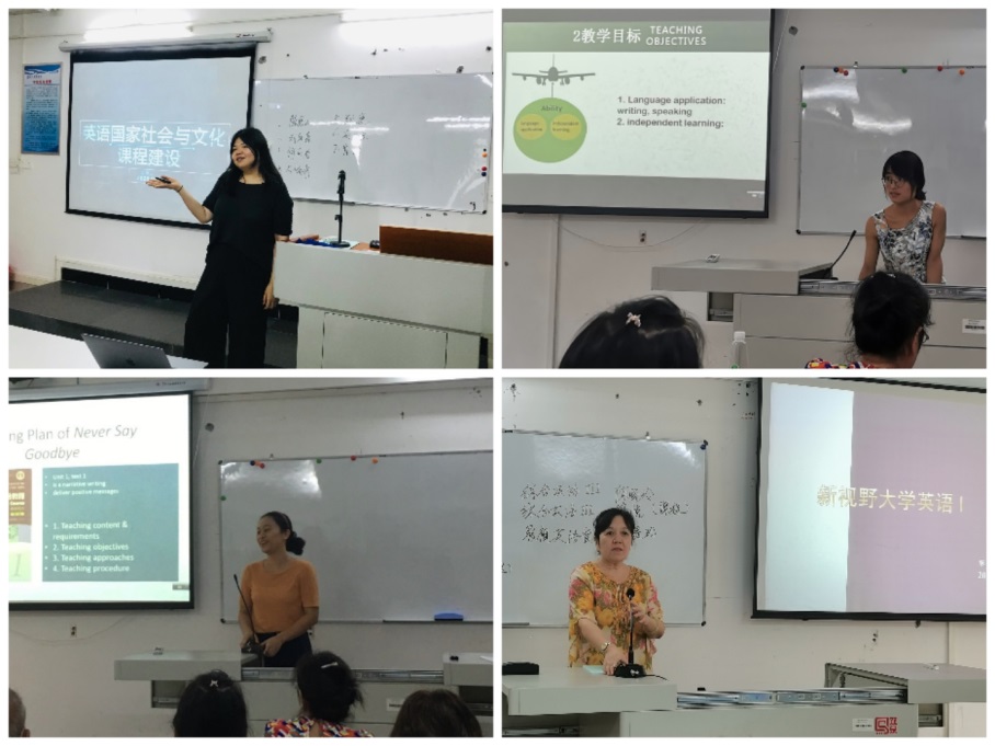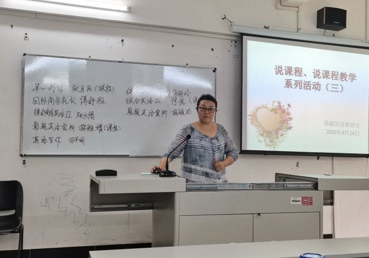 为积极响应学院《关于开展评建工作“六说两查”活动的通知》的工作要求,努力配合学院完成评估阶段性工作任务,同时为了深化课程建设、促进课堂教学质量,商务英语专业(基础英语教研室)分别在9月10日、9月17日和9月24日连续开展了三场“说课、说课程”活动。