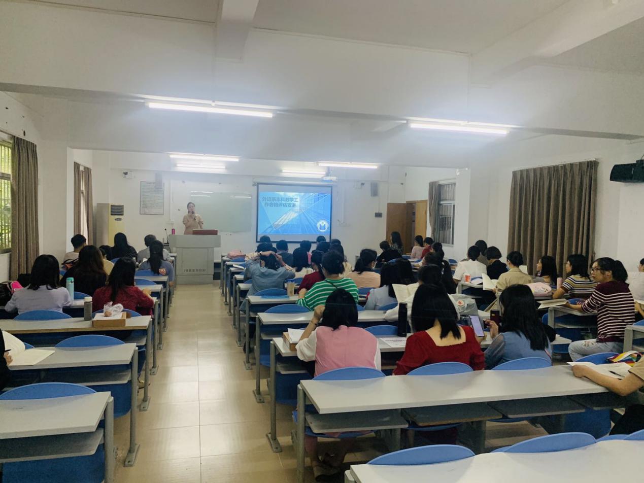 2020年10月7日上午,我系本科教学工作合格评估知识宣讲会在外语楼203室举行。外语系副主任邢佳平主持宣讲会并做了宣讲报告。外语系副主任谢秀珍、各教研室主任、全体专任教师出席了会议。