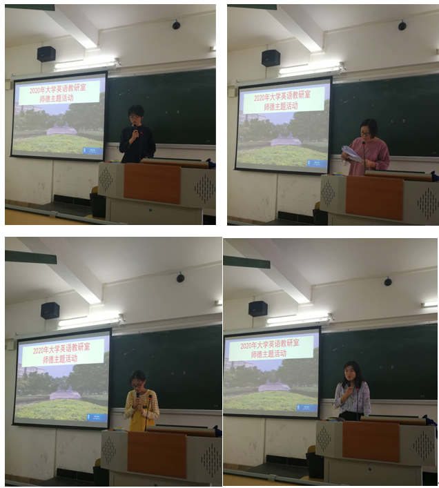 为了贯彻落实《广东省教育厅关于2020年师德建设主题教育月活动的通知》的要求,进一步加强师德师风建设,全面提升教师思想素质和职业道德水平,努力建设一支师德高尚、业务精湛、结构合理、充满活力的高素质专业化创新型教师队伍。按照本次师德建设主题建设活动的指导思想与外语系师德建设活动实施方案,大学英语教研室于10月10日在外语楼503课室,以“淬炼师德师能,践行育人使命”为主题,开展了师德主题教育活动。
