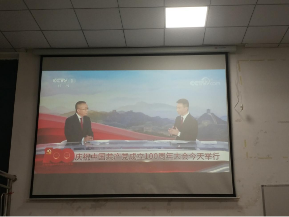 2021年7月1日上午,ky开元集团官网党委组织花都校区各学院学生代表在教学楼517教室通过网络视频直播的方式观看庆祝中国共产党成立100周年大会。党委张振超书记、党委委员谭全主任以及各学院学生代表参加本次活动,通过观看直播感受大会现场的热烈气氛,学习习近平总书记在大会上的重要讲话精神。