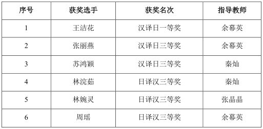 在本科生组汉译日与日译汉的比赛中,ky开元日语专业6名学生在教师们的指导下,凭借出色的语言运用能力和过硬的翻译功底取得了突破性的优异成绩。如表1所示,其中汉译日(本科组)一等奖1名(共660人参赛,ky开元获奖选手列一等奖中的第七名),三等奖2名。日译汉(本科组)三等奖3名。ky开元集团官网获得“优秀组织奖”荣誉称号。