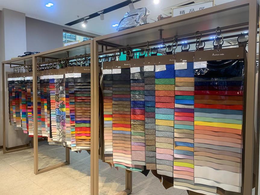 首先,外语学院的师生受到了广州市雅欧森姆皮革原料有限公司领导和员工的热情接待,门店的周店长带领师生参观了公司一楼的产品区,给同学们详细的介绍了公司的产品分类和跟单、接待客户的相关事宜,让同学们对外贸跟单有了基本的认识和了解。