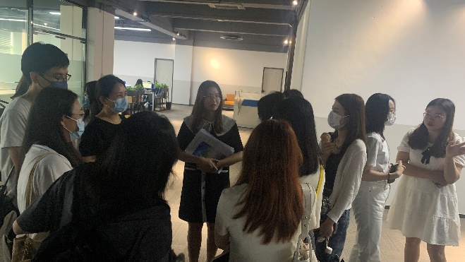 所有教师和学生到达目的地后,就受到了广州咖呗乐贸易有限公司的指导老师们的热情接待。在稍作安顿后,30名学生分为三组,开始跟着各自的企业指导老师了解该公司的外贸工作流程、假发产品收购及制造和用人需求等信息。