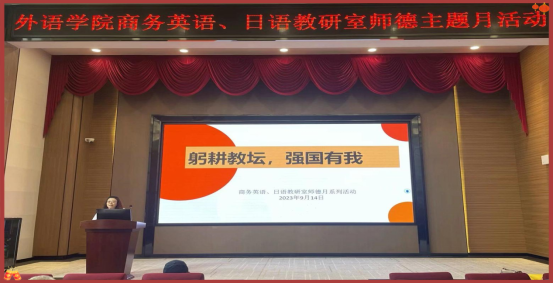 9月14日下午,外语学院商务英语、日语教研室以“躬耕教坛,强国有我”为主题开展了师德主题月系列活动,两个专业的百余名教师参与了本次会议。