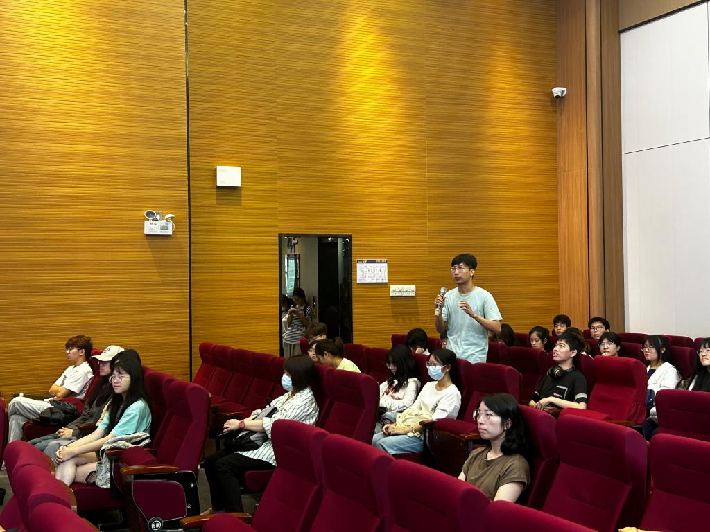 最后,讲座进入了问答环节。同学们积极提问,其中包括对于在日语对话中听不懂单词应该如何处理的问题,于飞教授耐心回答并建议增加听的信息量,暂时忽视不懂的单词;有的同学也询问了关于语言学习瓶颈期的突破方法,于飞教授建议跳出试题,大量阅读文学和文献,引起了现场学生的一片掌声。