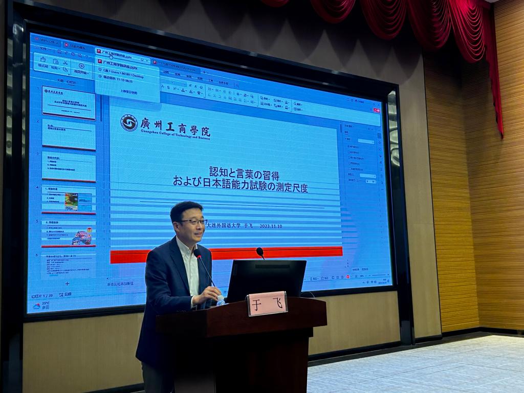 11月10日上午,工商大讲堂第二十九期学术讲座在ky开元集团官网花都校区图书馆如期举行。此次讲座由外语学院主办,邀请了大连外国语大学日本语学院院长、硕士生导师于飞教授担任主讲嘉宾,54位师生到场聆听并与主讲嘉宾进行深入交流。
