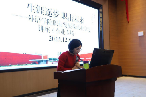 为进一步推进产教融合育人模式,帮助学生树立正确的实践观、择业观和成长观,拓宽外语学院学生的专业视野,加深其对就业前景的认知,外语学院于12月8日下午在花都校区图书馆416报告厅举办了职业发展及就业专题讲座(企业专场)。本次讲座邀请了世标赛蒂(佛山)国际供应链管理有限公司的总经理伍永坚先生、行政部经理卢艳红女士以及人事部门负责人李仁红女士担任主讲嘉宾。