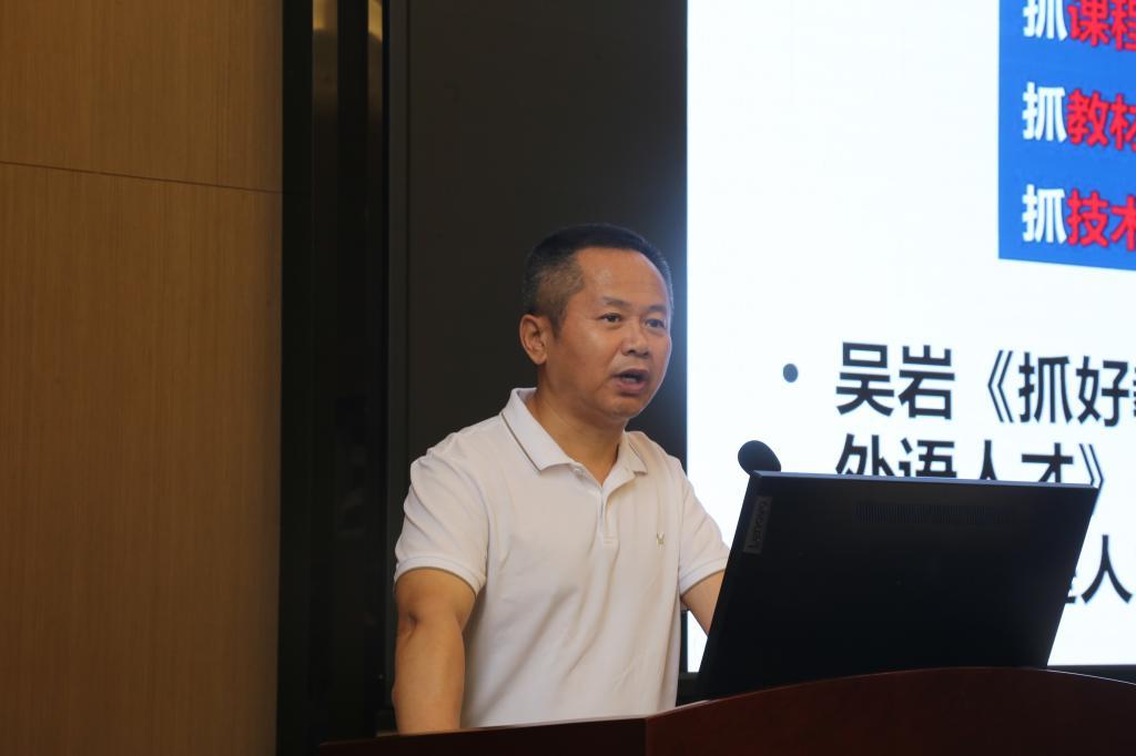 他结合海南大学外国语学院“外语+公共外教”为核心的人才培养工作,以《海南地域文化概论》课程建设为例,从课程建设的背景、内容选择、教学方法、课程考核、成绩评定、课程评价等方面出发,介绍了课程建设的具体做法。他提出教学与科研紧密结合,以科研反哺教学,应将课程思政作为前沿概念,坚持以“人”为本的课程设计理念,将第一第二课堂有机结合。