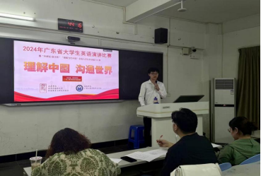 10月8日晚,外语学院在外语楼306教室成功举办2024“外研社•国才杯”“理解当代中国”全国大学生外语能力大赛英语组演讲赛项校内第二轮选拔。本次活动旨在选拔具备扎实英语语言基础、创新精神和思辨能力的演讲精英,为即将到来的11月份广东省复赛输送优秀人才。