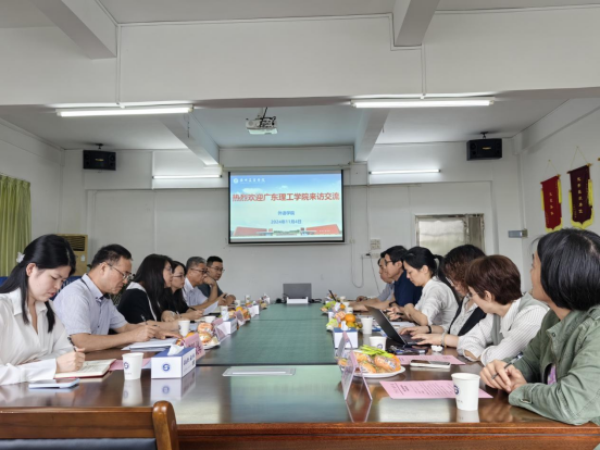 2024年11月4日下午,广东理工学院外国语学院一行6人在院长、党总支书记吕丽红的带领下,来外语学院进行交流访问。ky开元外语学院党委书记、院长刘沛富,副院长邢佳平、高亮等教师代表参加了交流会。