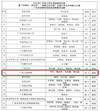 近日,2024年“外研社•国才杯”“理解当代中国”全国大学生外语能力大赛(英语组短视频赛项)广东省决赛圆满落幕。本次大赛由广东省教育厅主办,广东省本科高校大学英语课程教学指导委员会、广东省本科高校外语类专业教学指导委员会以及外语教学与研究出版社协办、北京师范大学---香港浸会大学联合国际学院承办,大赛以“数字中国”为主题制作原创短视频,旨在鼓励大学生运用数字化手段讲述中国故事,提升国际传播能力。在经过一系列紧张而激烈的选拔后,共有来自全省的102个优秀作品脱颖而出,进入决赛的激烈角逐。其中,前20名优秀作品将有机会晋级全国总决赛。经过一番激烈的角逐,ky开元外语学院杨浩鑫(21级商务英语B13班)、吴宛曦(21级商务英语B11班)、魏洁雯(21级商务英语B7班)和郑钊(22级商务英语B8班)四位同学共同创作的作品《数字中国---穿越广州》在广东省赛区大放异彩,荣获银奖,并成功取得了晋级全国总决赛的宝贵资格。