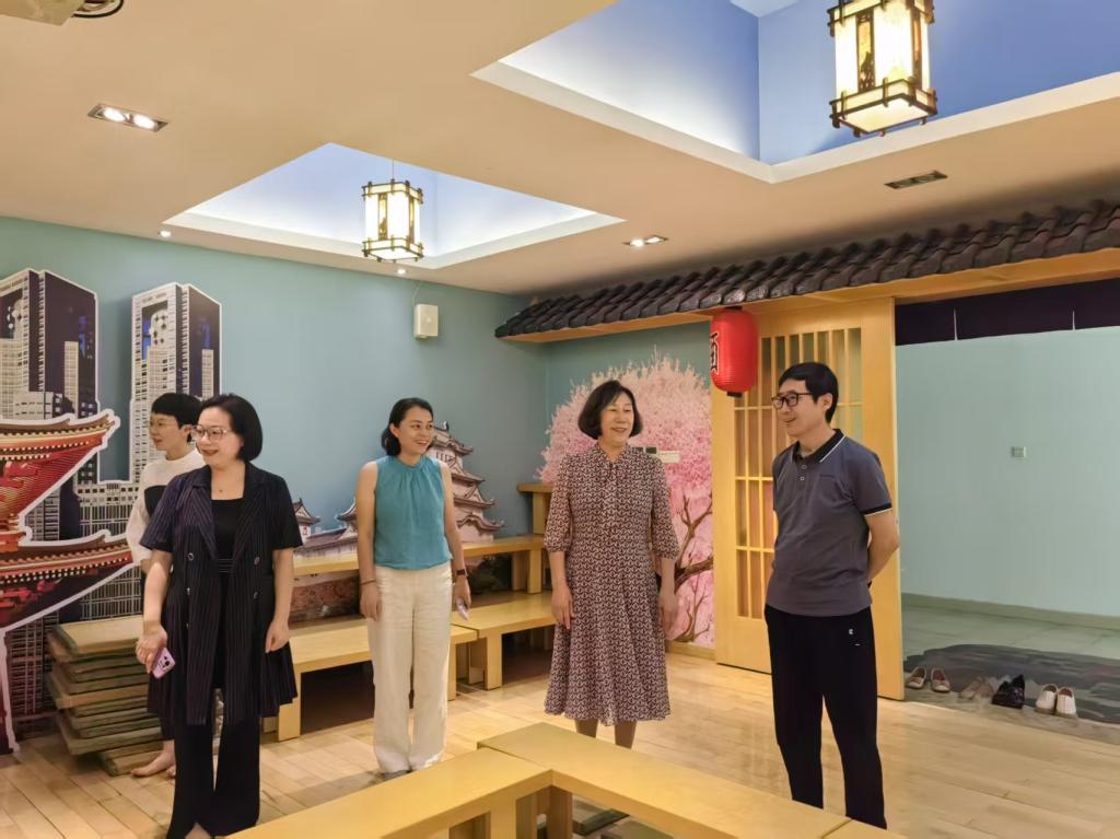 随后,刘院长一行参观了外国语学院的北美园、日本文化体验园等实验室。