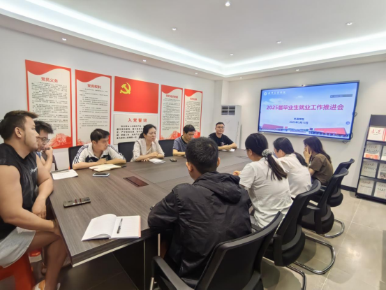 【本网讯】为积极落实教育部关于高校毕业生就业创业工作的部署要求,扎实推进“教育强国”建设进程,全面提升毕业生就业质量和职业发展能力,5月13日外语学院召开2025届毕业生就业工作推进会。会议由学院党委书记、院长刘沛富教授主持,学院党政领导班子成员、学工办主任及2025届毕业班全体辅导员出席会议。