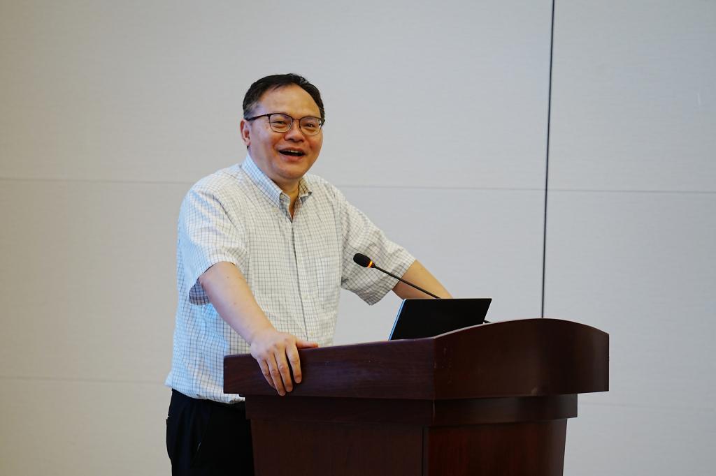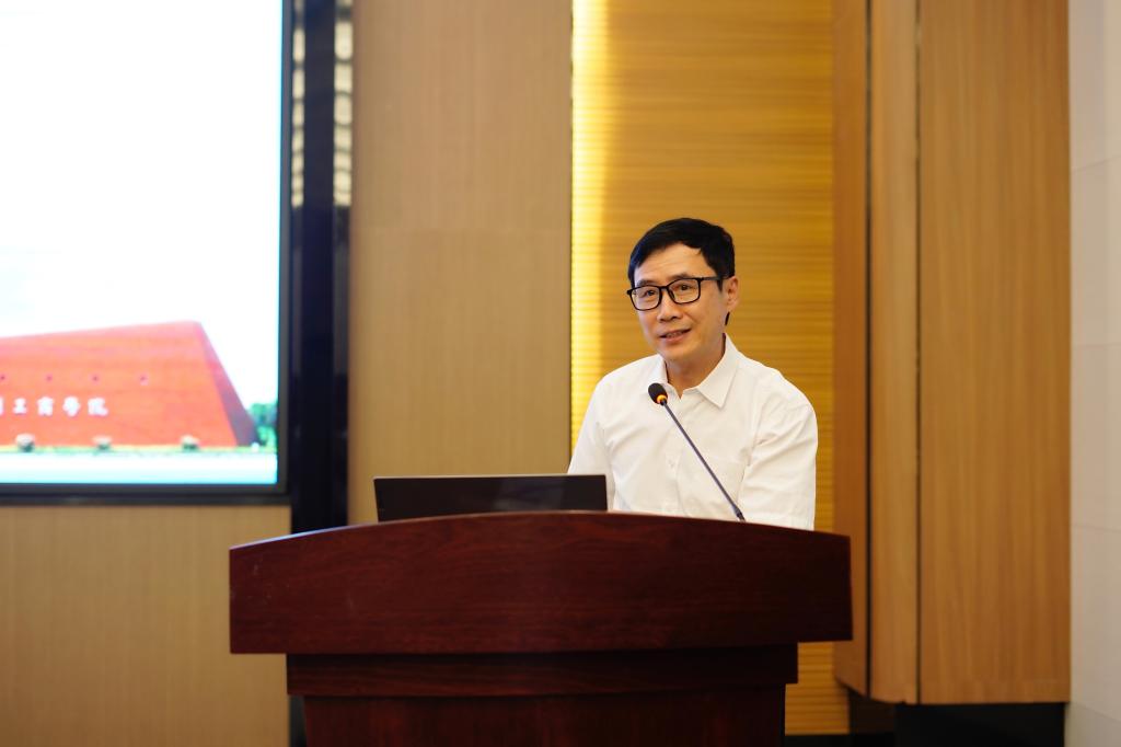 广东省大学英语课程教学指导委员会秘书长、广东外语外贸大学教务部部长陈金诗教授,作为赛事主办方的代表,详细介绍了本届赛事参赛情况、评分标准等。他指出,本届赛事吸引了来自全省本科高校的众多专业与非专业学生参与,呈现出参与热度高、题型创新等特点。此外,大赛引入了智能写作评价系统,顺应了数字化教学改革背景下,英语写作学习、教学与评价等方面的趋势。大赛的成功举办对推动全省英语写作教学改革方面具有积极意义。